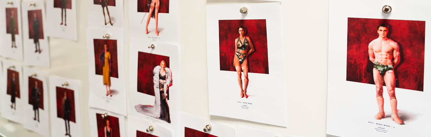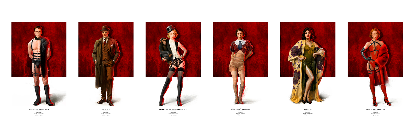 At the Kit Kat Klub, we sought a fusion between classic and contemporary. Younger audiences today might not connect with a World War II story, but they do respond to modern visual cues. That’s why we blended historicist designs with modern materials —leather, latex, harnesses, rhinestones— adding modernity without breaking the classic essence. It’s our way of rebuilding the classic.