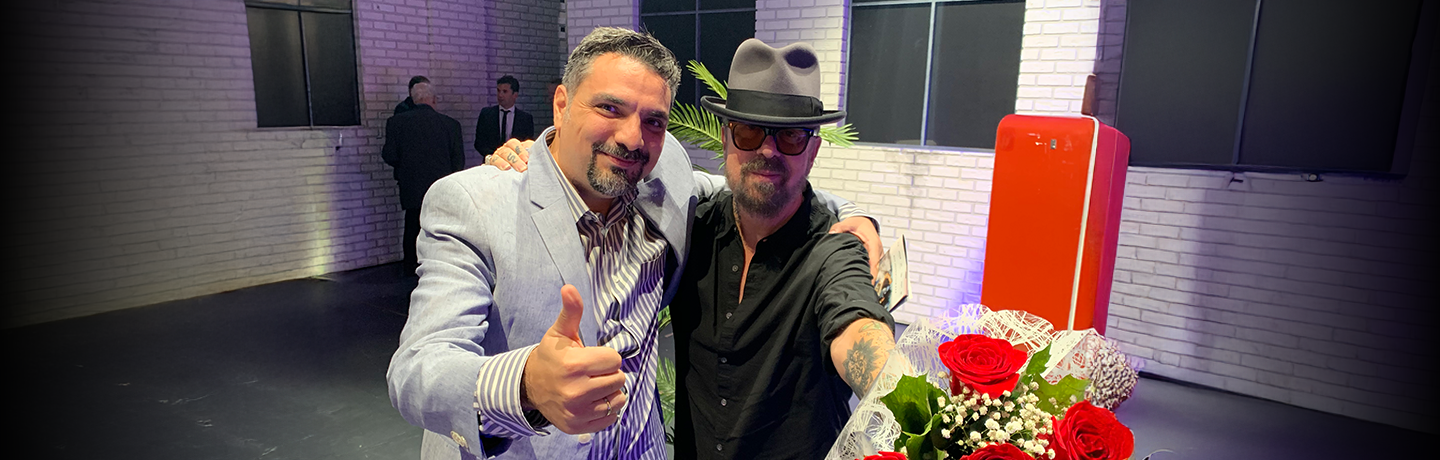 Julio Awad junto a Dave Stewart, compositor musical de Ghost.